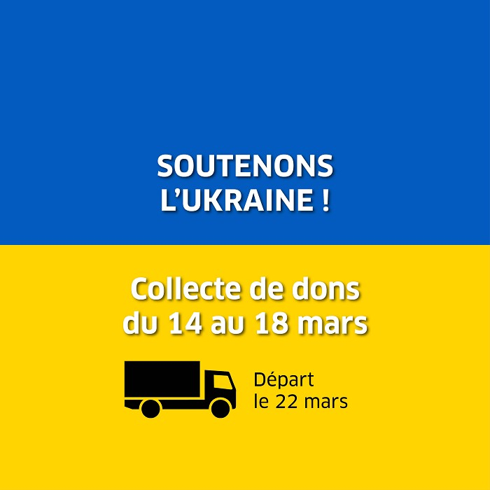 Le soutien humanitaire à l'Ukraine, c’est maintenant ! Nous nous joignons à l’opération de collecte organisée par le Rotary, dont un membre affrète gracieusement un camion de 25 tonnes à destination de la frontière ukrainienne.